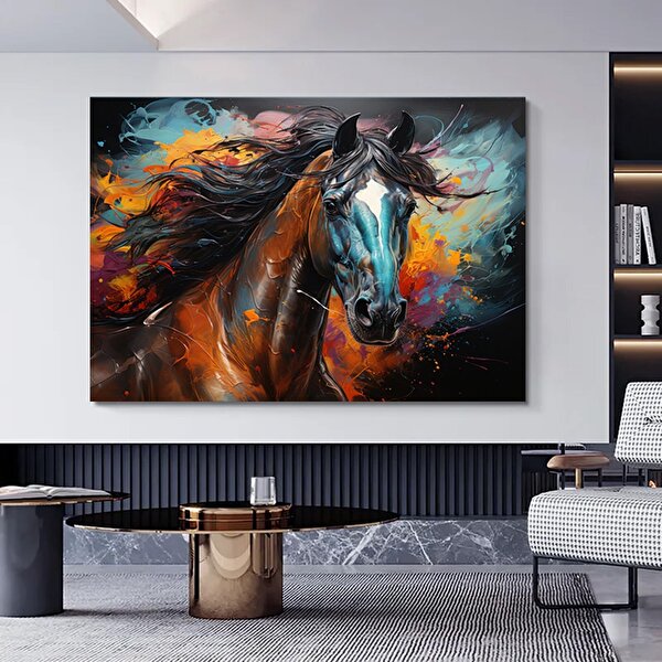 Modern tablo Renkli At Kanvas Tablosu – Şahlanan At Kanvas Sanatı – Modern Dekor 100x200 cm