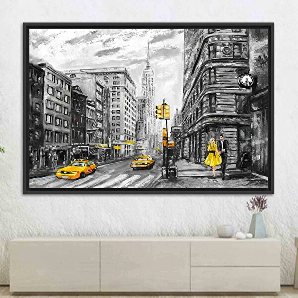 Modern tablo Sevgililer Günü Kanvas Sanatı, Sarı Taksi Dekoru, Romantik Yağlıboya Duvar Baskısı 90x150 cm