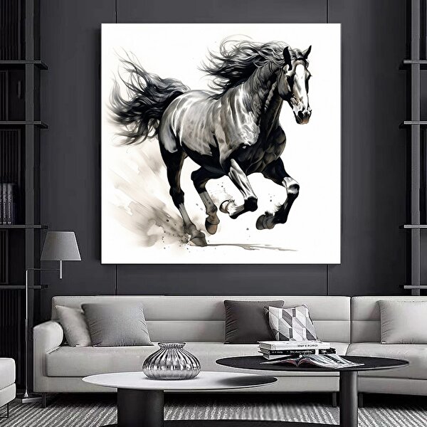 Modern tablo Siyah At Duvar Sanatı; Siyah At Kanvas Baskısı; At Duvar Sanatı; Büyük Boy Hayvan Duvar Sanatı 40x40 cm