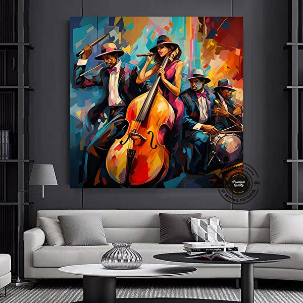 Modern tablo Siyah Caz Kanvas Baskı; Afrika Caz Duvar Sanatı; Orkestra Kanvas 100x100 cm