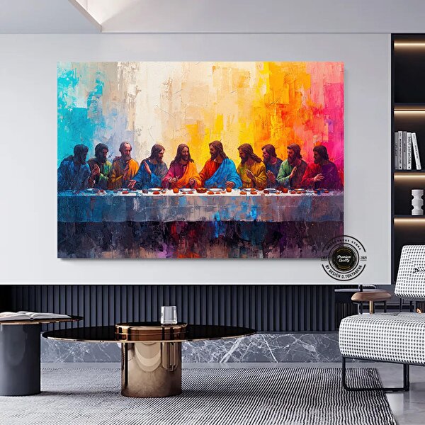 Modern tablo Son Akşam Yemeği Kanvas; Dini Duvar Dekoru; İsa Mural Tablo; Ekstra Büyük 150x250 cm