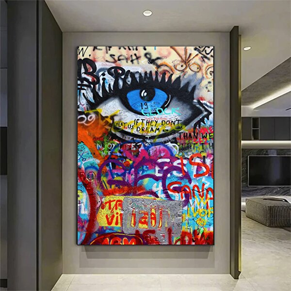 Modern tablo Soyut Göz Kanvası; Renkli Sanat Eseri; Çağdaş Kanvas; Bakış Duvar Sanatı; Modern Yağlı Boya Baskı 50x70 cm