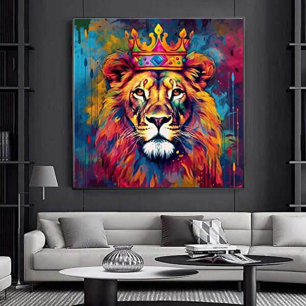 Modern tablo Soyut Graffiti Aslan Tablosu; Modern Hayvan Sokak Sanatı; Renkli Kanvas Poster Baskısı; Duvar Sanatı 80x80 cm