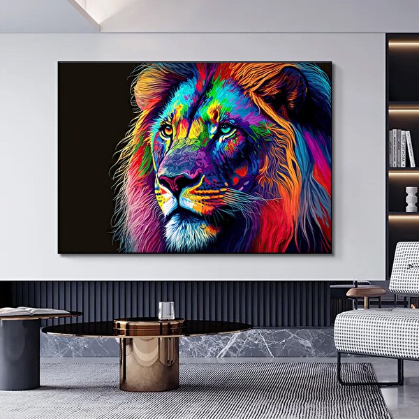 Modern tablo Soyut Kanvas Aslan Resmi, Renkli Aslan Tablosu Poster Baskısı, Duvar Dekoru, Oturma Odası İçin 150x250 cm