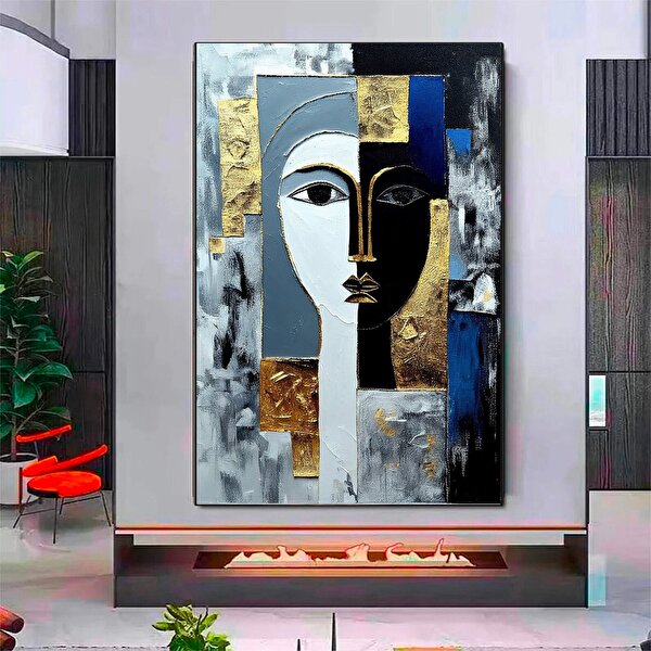 Modern tablo Soyut Yüz Kanvas Tablo; Portre Sanatı; Asmaya Hazır; Trend Dekor; Hediye 100x150 cm