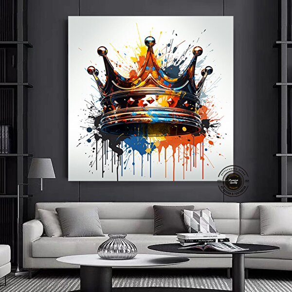 Modern tablo Taç Grafiti Duvar Sanatı, Taç Grafiti Sanatı, Kral Tacı Dijital Sanat Baskısı, Sokak Pop Art 30x30 cm