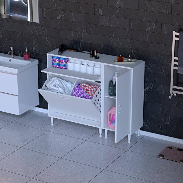 Modilayn Yenice Banyo Dolabı 85 Cm’lik 2 Sepetli, Kapaklı Üst Göz Ve 50’lik Kapaklı 1 Raf (135 Cm Genişlik) 135 cm