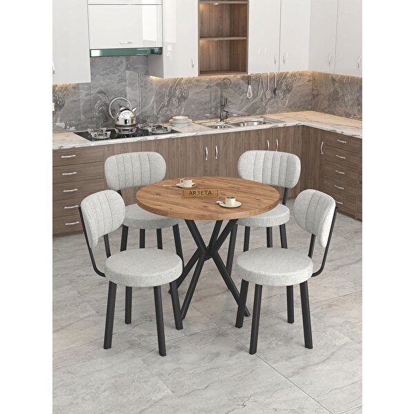 Mygusi Azra 90cm Atlantik Mutfak Masası, Mutfak Masası Takımı, Yemek Masası, 4 Açık Gri Sandalye Açık Gri