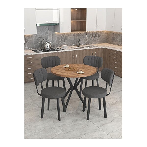 Mygusi Azra 90cm Atlantik Mutfak Masası, Mutfak Masası Takımı, Yemek Masası, 4 Antrasit Sandalye Antrasit