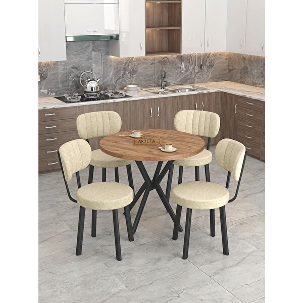 Mygusi Azra 90cm Atlantik Mutfak Masası, Mutfak Masası Takımı, Yemek Masası, 4 Krem Sandalye Krem