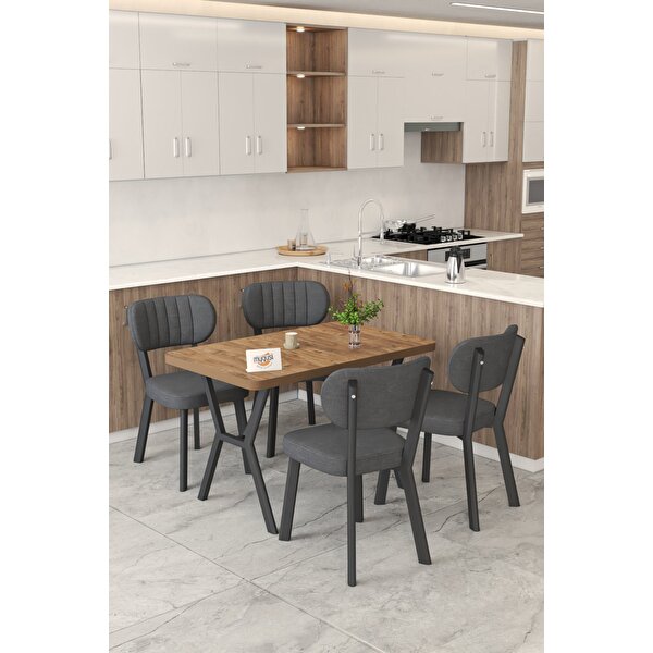 Mygusi Gnr 70x110cm Sabit Atlantik Mutfak Masası Takımı, Yemek Masası, 4 Modern Antrasit Sandalye Antrasit