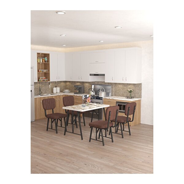 Mygusi Hayat 70 X 110 Cm Sabit Efes Mutfak Masası, Mutfak Masası Takımı, Yemek Masası, 4 Kahverengi Sandalye Kahverengi
