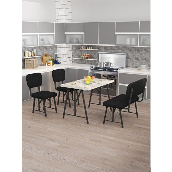 Mygusi Hayat 70 X 110 Efes Mutfak Masası, Mutfak Masası Takımı, Yemek Masası, 2 Sandalye 1 Bench - Siyah