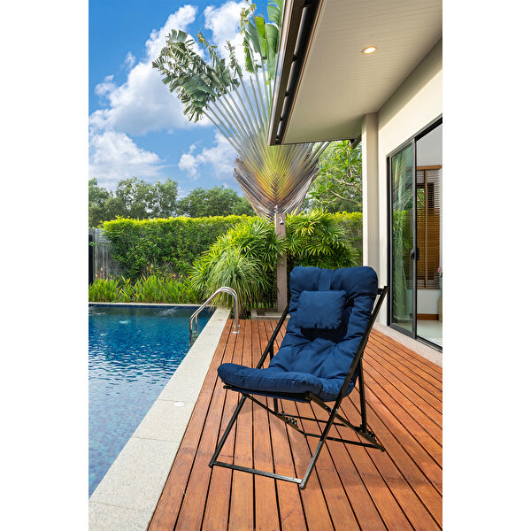 Napper Katlanabilen Şezlong Katlanır Sandalye Bahçe Balkon Teras Dinlenme Şezlongu Lacivert