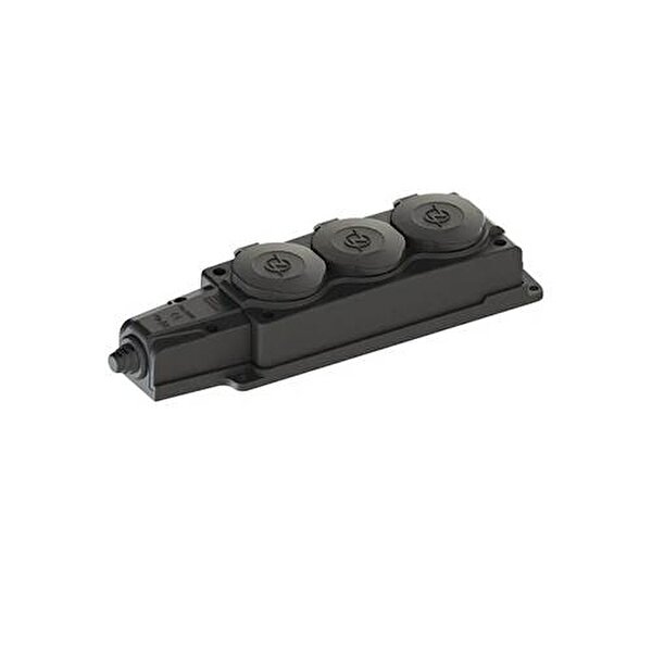 NEAD 1x16A 3'lü Kauçuk Grup Priz - 4103, endüstriyel ve zorlu çalışma ortamları için tasarlanmış, kauçuk gövdeye sahip dayanıklı bir grup prizdir. 16A kapasitesi ile yüksek akım gerektiren cihazlar için güvenli ve güçlü bir elektrik bağlantısı sağlar.