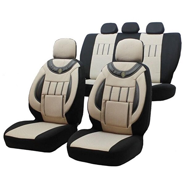 Nemu Fiat Brava Uyumlu Jakarlı Oto Koltuk Kılıfı Bej-Siyah