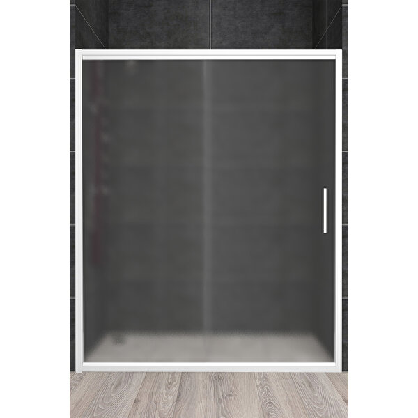 Netdeko Carmen Temperli 6 Mm Ön Cephe Cam Duşakabin Mat Krom Profil Buzlu Cam 148 cm