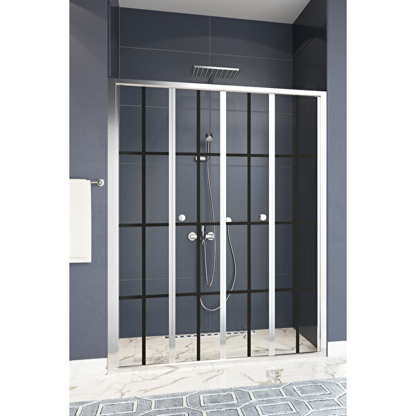 Netdeko Harmonika Temperli 4 Mm Ön Cephe Katlanır Cam Duşakabin Krom Profil Siyah Karolaj Cam 165 cm