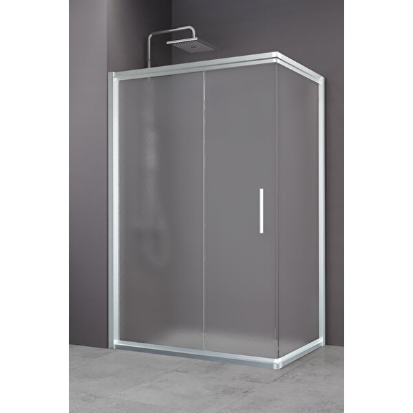 Netdeko Minesota Temperli 6 Mm Dikdörtgen Cam Duşakabin Mat Krom Profil Buzlu Cam 80x110 cm