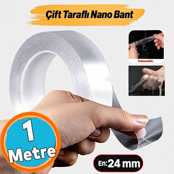 Çift Taraflı Nano Yapışkan Bandı Şeffaf 24 mm x 1 Metre