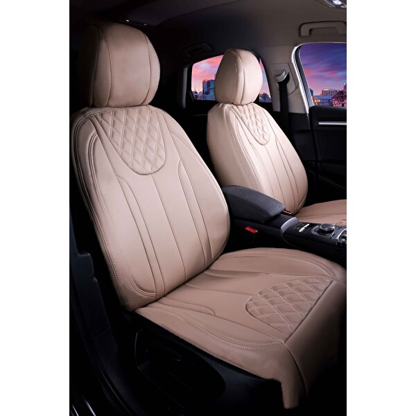 Opel Astra H Sedan Uyumlu Lüx Deri Oto Koltuk Kılıfı Ön Arka Takım İron Bej