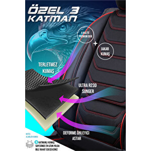 Opel Astra K Sedan Lüx Deri Oto Koltuk Kılıfı Ön Arka Takım Set Eagle Si̇yah Kirmizi Siyah-Kırmızı