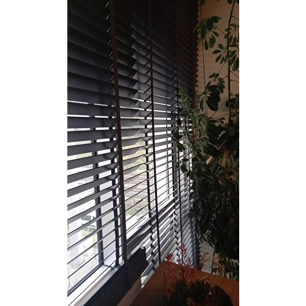 Özel Jaluzi Antrasit 50 Mm Ahşap Jaluzi 100x220 cm