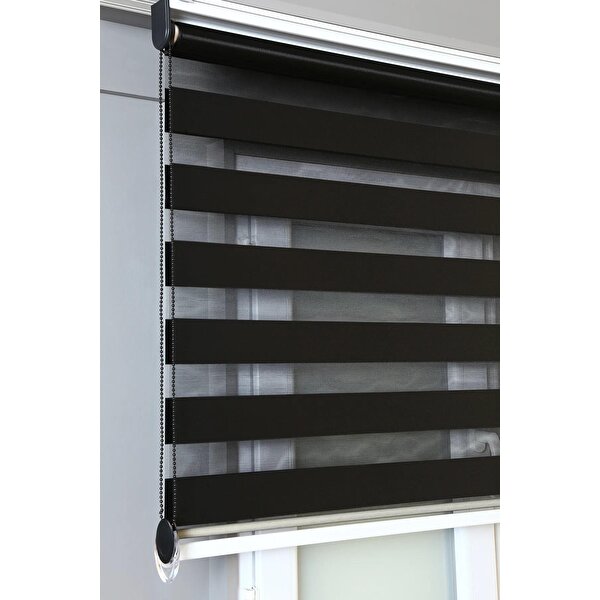 Özel Jaluzi Siyah Zebra Stor Perde (siyaha Siyah) 220x250 cm