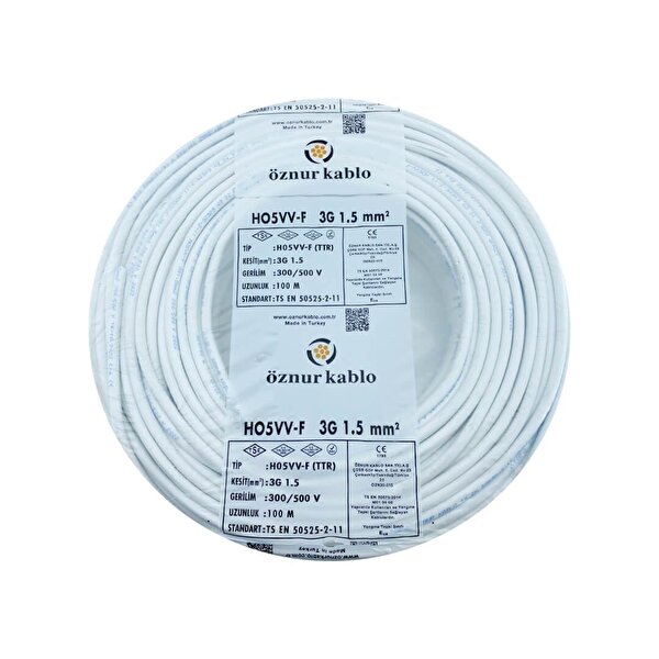 Öznur Kablo Öznur 70mt 3x1,5mm Ttr Bakir Elektri̇k Kablosu Beyaz