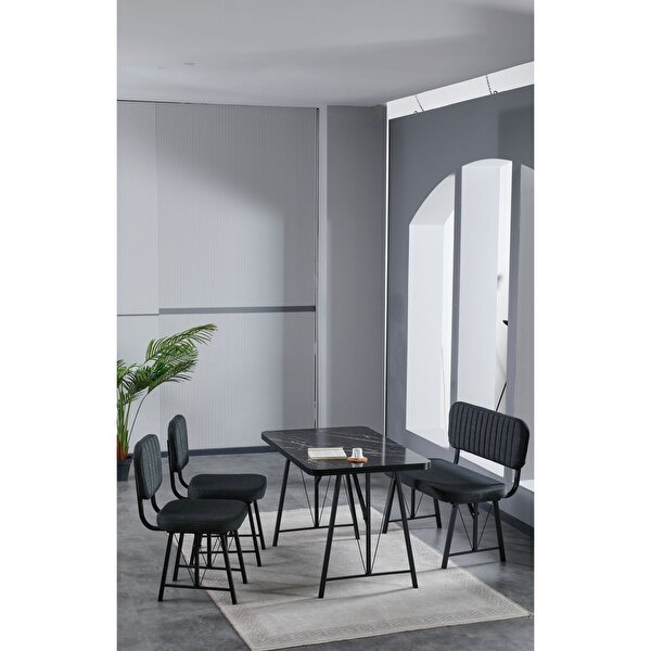 Parlazonhome Elfin 70x110 Siyah Yemek Masası, Yemek Masası Takımı, 2 Sandalye 1 Bench - Antrasit