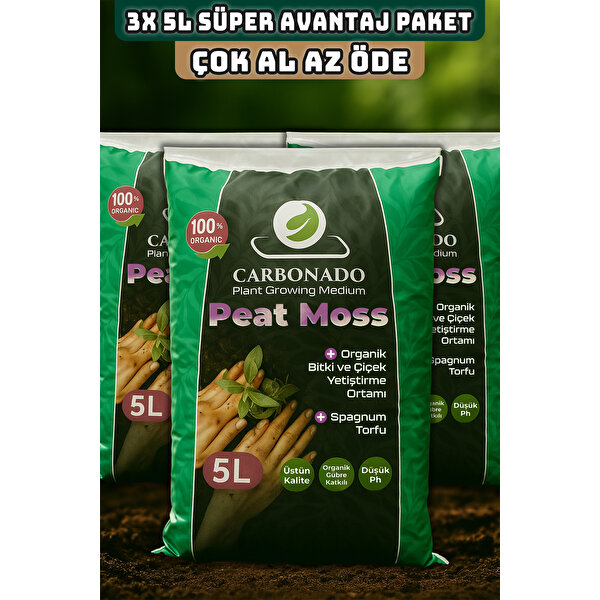 Carbonado Peat Moss 5L x3 - Bitkiler İçin Zengin Organik Torf
