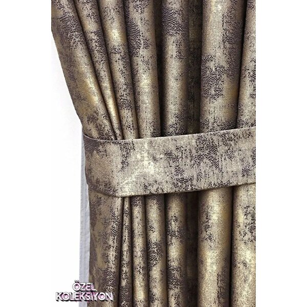 Perde Pendik Fon Perde Royal Desen, Yeni Sezon, Pileli, Kırışmaz, Sarı Lacivert, Özel Koleksiyon (tek Kanat) 80x250 cm