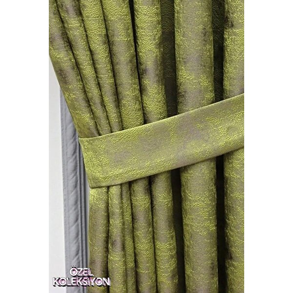 Perde Pendik Fon Perde Royal Desen, Yeni Sezon, Pileli, Kırışmaz, Yeşil, Özel Koleksiyon (tek Kanat) 70x280 cm
