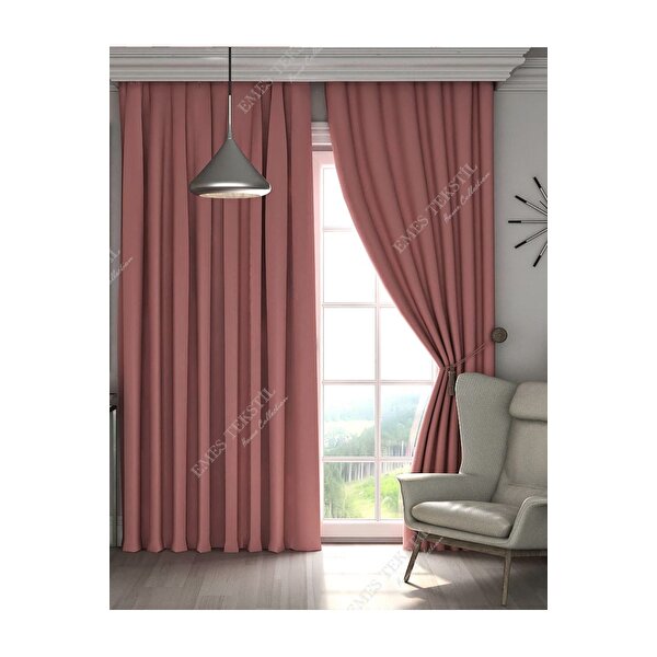 Perde Pendik Pudra Blackout, Işık Geçirmez Karartma Güneşlik, Pilesiz (tek Kanat Fon Perde) 200x150 cm