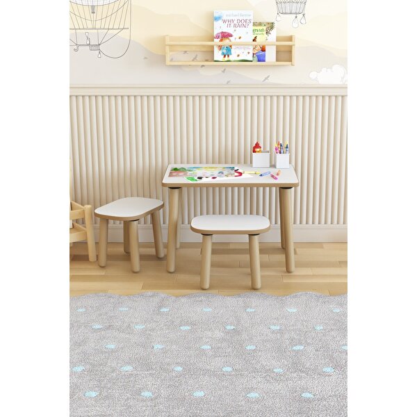 POFİTTO Çocuk Oyun Etkinlik Çalışma Masası Aktivite Masası . ; Masa Üst tabla: 40x60 cm Masa Yükseklik: 42 cm TabureOturma Alanı: 21x30 cm Tabure Oturma Yüksekliği: 27 cm Masa ve Sandalyeler 1. ; Sınıf MDF Malzemeden CNC kesim ile üretilmiş olup kenarları ovalleştirilmiştir. ; Çarpma yaralanma gibi durumların ortaya çıkmaması için köşe ve sivri hiç bir yer bırakılmamıştır. ; Ayaklar Gürgen Ağaçtan üretilmiş olup doğal ahşaptır. ; Sağlığa zararlı boya vernik vb madde kullanılmamıştır. ; Kurulumu basittir. ; Ahşap ayakları tablalarda takılı aparatlara el ile döndürerek takmanız yeterlidir. ; Ayakların ve taburelerin altında bulunan keçeler sayesinde zemine zarar vermez.TAMAMI MDF'DİR ----GÖRSELLERDEKİ OYUNCAK VE ARAÇ GEREKLER AKSESUAR OLARAK KULLANILMIŞTIR,ÜRÜNLERE DAHİL DEĞİLDİR ----;