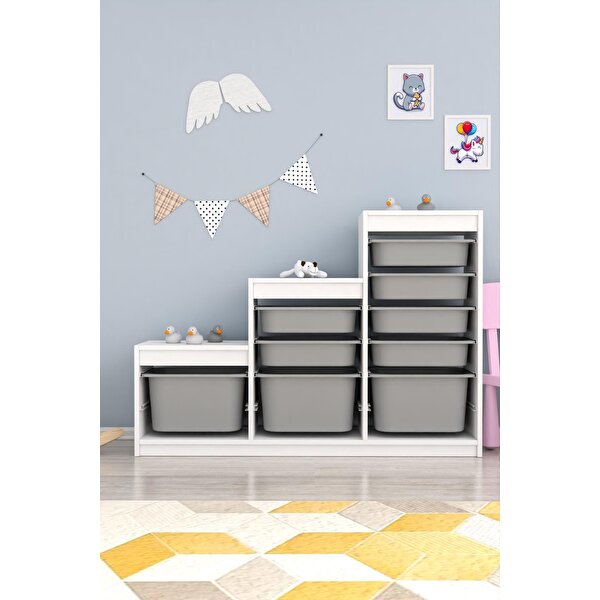 Pratico Swiss Gri 9 Sepetli Beyaz Gövde Çok Amaçlı Dolap