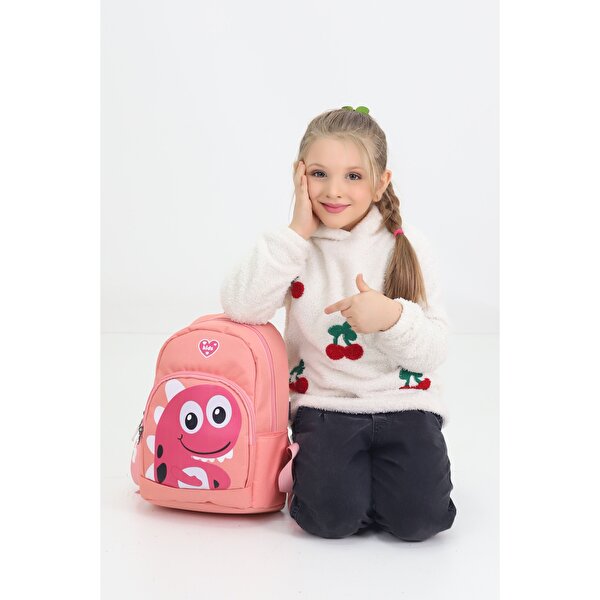 • Eşsiz Tasarım: Somon rengi ve sevimli, benekli Dinozor figürü, çantayı diğerlerinden ayırır ve hem kız hem de erkek çocukları için eğlenceli bir seçenektir.
