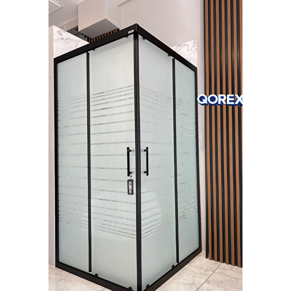 Qorex Ustaduş - Qorex Marka - Si̇yah - 6 Mm Temperli Kum Cam Duşakabin H:190 Özel Seri Krom Aksesuar ( 9 ) 80x110 cm