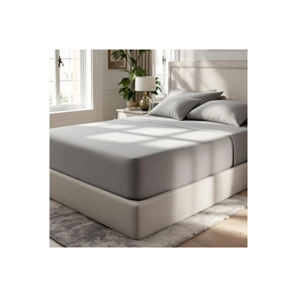 Soho 200 TC Pamuk Perkal Çift Kişilik Lastikli Çarşaf Gri