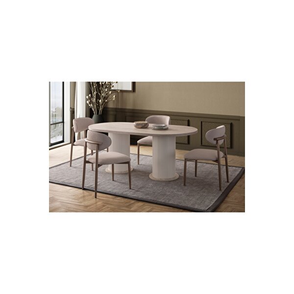 Alora Bohem Yemek Masasi Seti̇ 4 Sandalye Traverten