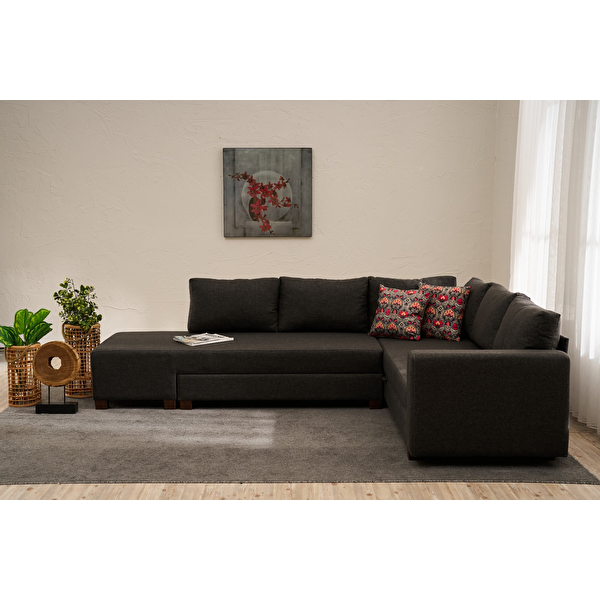 Aly Serisi Yataklı Sandıklı Köşe Koltuk Antrasit Sol