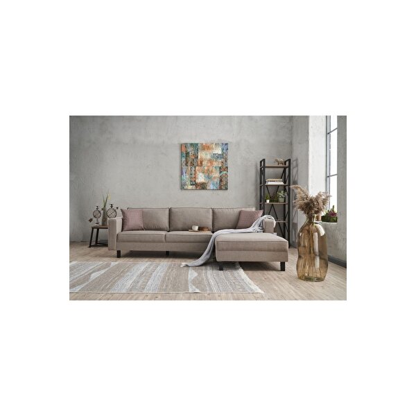 Rabi Kale Serisi L Köşe Koltuk Keten Krem Sağ Krem