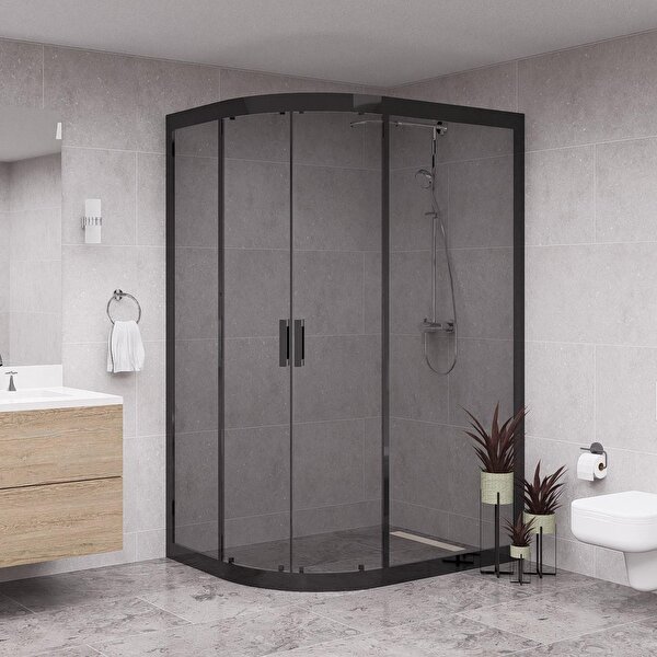 Raumark Black Solis 6mm Füme Cam Asimetrik Oval Duşakabin 100x110 cm