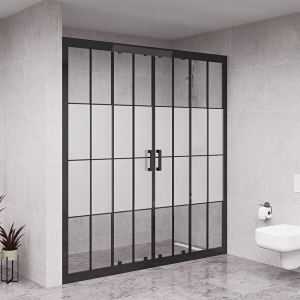 Raumark Black Verta 6mm Yarım Kumlamalı Karolajlı Orta Açılır 2 Sabit 2 Sürgü İki Duvar Arası Duşakabin 167 cm