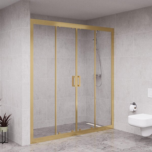 Raumark Gold Verta 6mm Şeffaf Cam Orta Açılır 2 Sabit 2 Sürgü İki Duvar Arası Duşakabin 156 cm
