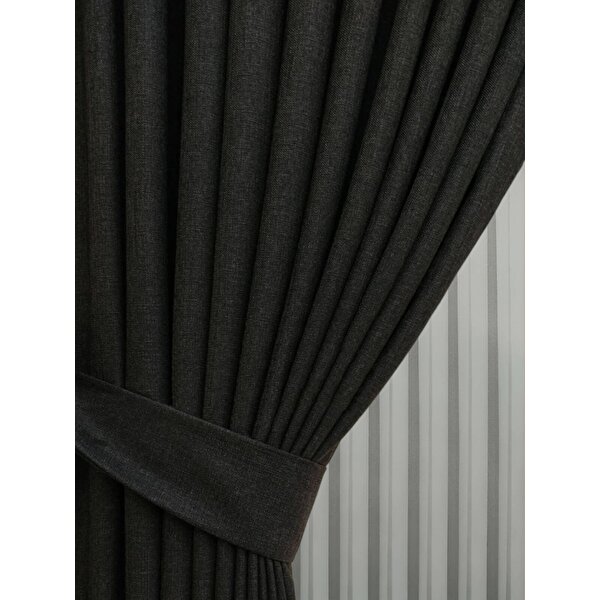 Yeni Sezon %100 Keten Fon Perde Antrasit - Pilesiz