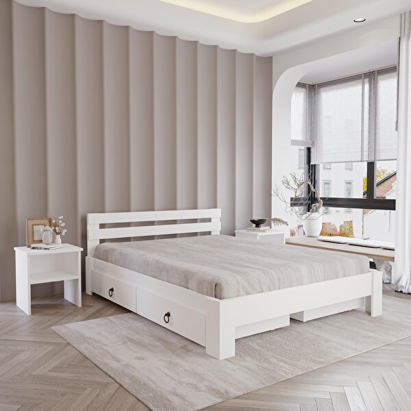 Renazzo Mobilya 4 Çekmeceli Lotus Mdf Karyola | Çift Kişilik Yatak Uyumlu, Kolay Kurulum