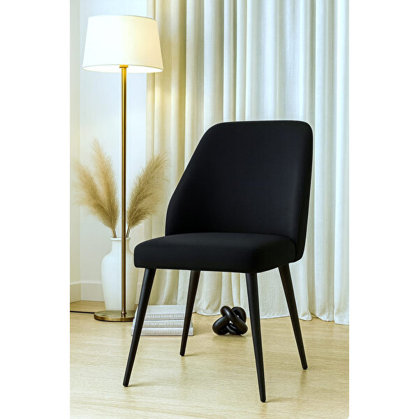 Renlife Aras Mutfak/salon Sandalyesi Baby Face Kumaş Metal Siyah Ayak 1 Adet ( Siyah Kumaş Siyah Ayak) Siyah - Siyah