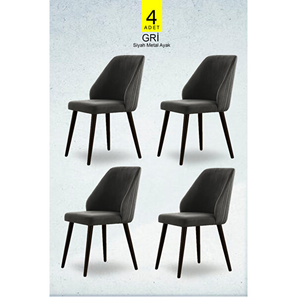 Renlife Sandalye 4 Adet Mutfak/salon Sandalyesi Baby Face Kumaş Metal Siyah Ayak ( Gri ) Gri