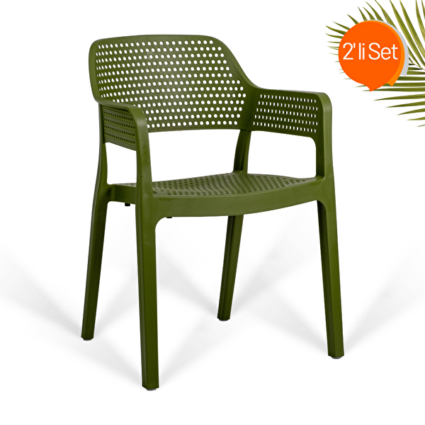Retro Art Hawaii Kollu Lüks Sandalye 2'li Set Haki Yeşil